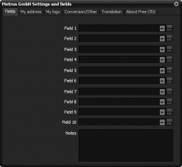 A proper test report always requires a number of information to be presented with the result. Those could be data of the test sample as well as customer names or job numbers. To enter bring those data to the test report FreeCRS offers 10 single line data fields as one multi line field (e.g. for notes). Those can be named and used as per your specific needs.
