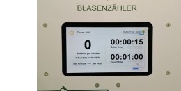 The Laser Bubble Counter comes with a set of three different tubes, which are marked accordingly to correctly set the water level height. The precise measurements are displayed in bubbles per minute or bubbles per hour, enabling accurate leakage determination. Operation and control are carried out via a user-friendly touchscreen display, making handling very intuitive. Additionally, users can adjust the delay time and the measurement duration individually, which makes the counter highly versatile.