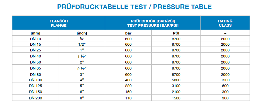 - Seat leakage test with air up to 40 bar / 580 PSI