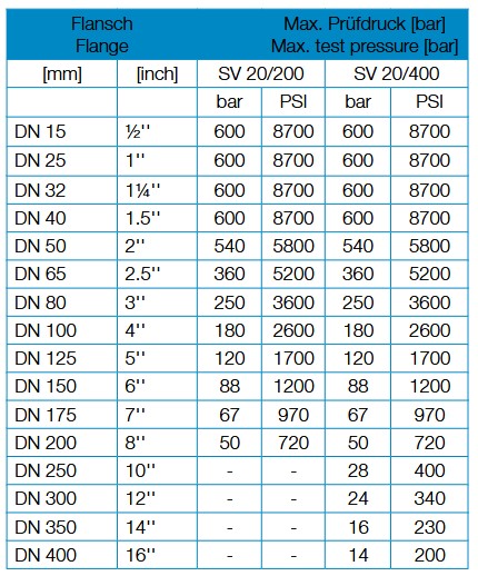 The SV 20/400 valve test bench is used for testing safety valves with flanges up to a nominal diameter of DN 400 / 16". It is particularly suitable for adjusting safety valves, as well as for leak and pressure tests on valves after repairs.